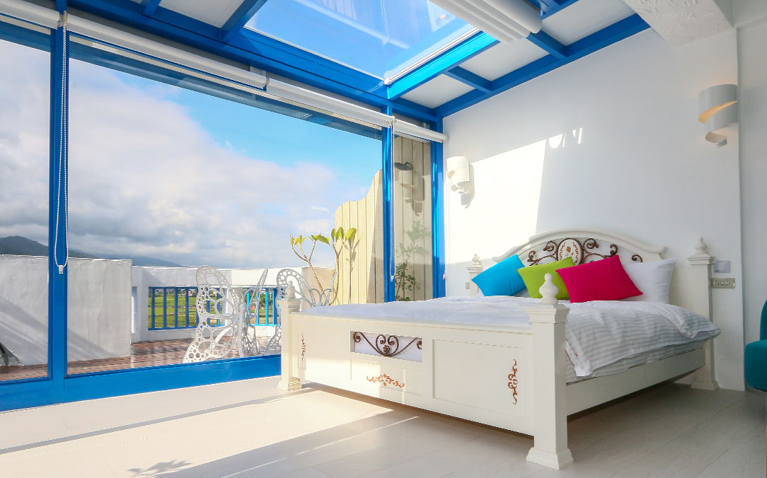 【礁溪地中海民宿】位於宜蘭礁溪,白牆藍窗,清新優雅。周圍被田園環抱,讓您感受異國情調的靜謐與放鬆,遠離城市喧囂。